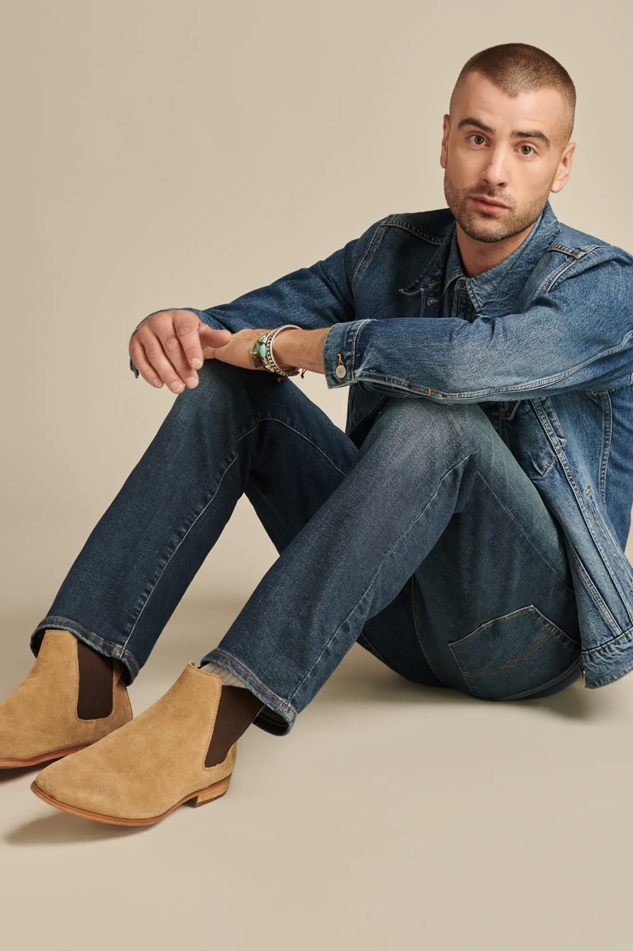 Enjoy effortless mobility with innovative stretch denim tailored for modern comfort.